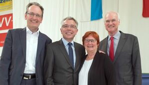 Der Vorsitzende der SPD-Kreistagsfraktion, Dr. Ralf Göck, gratulierte zusammen mit der Hirschberger Kreisrätin Evi Pfefferle und dem Heidelberger Bundetsagsabgerondten Lothar Bindung (rechts) dem alten und neuen Landrat Stefan Dallinger (Bildmitte) zur Verpflichtung auf die zweite Amtszeit.